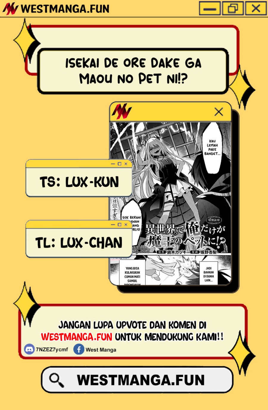 Baca manga Isekai de Ore dake ga Maou no Pet ni!? terbaru di Komikcast. Manga Isekai de Ore dake ga Maou no Pet ni!? selalu update di Komikcast. Jangan lupa membaca update manga lainnya ya. Daftar koleksi manga Komikcast ada di menu Daftar Manga.
