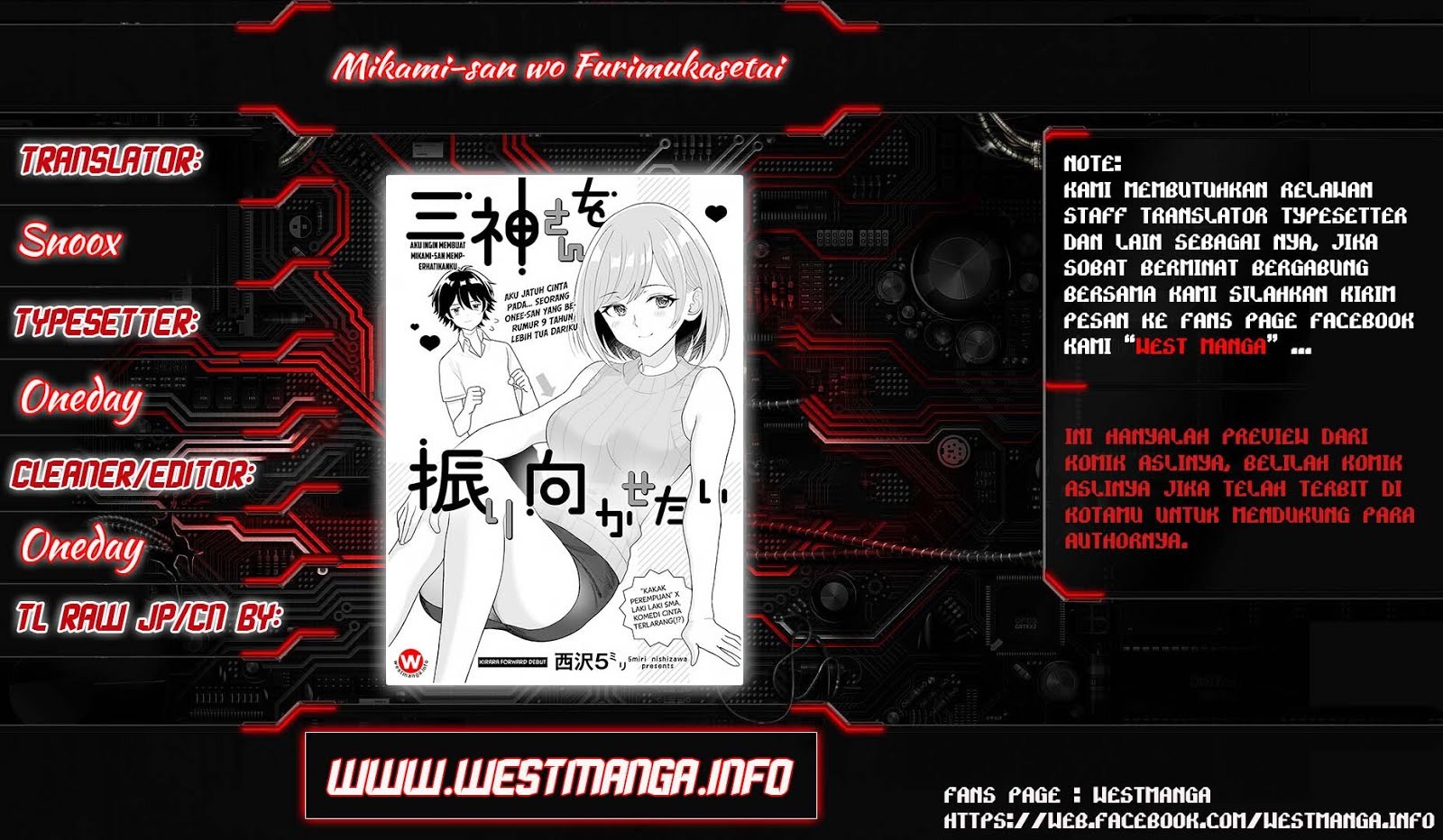 Baca manga Mikami-san wo Furimukasetai terbaru di Komikcast. Manga Mikami-san wo Furimukasetai selalu update di Komikcast. Jangan lupa membaca update manga lainnya ya. Daftar koleksi manga Komikcast ada di menu Daftar Manga.