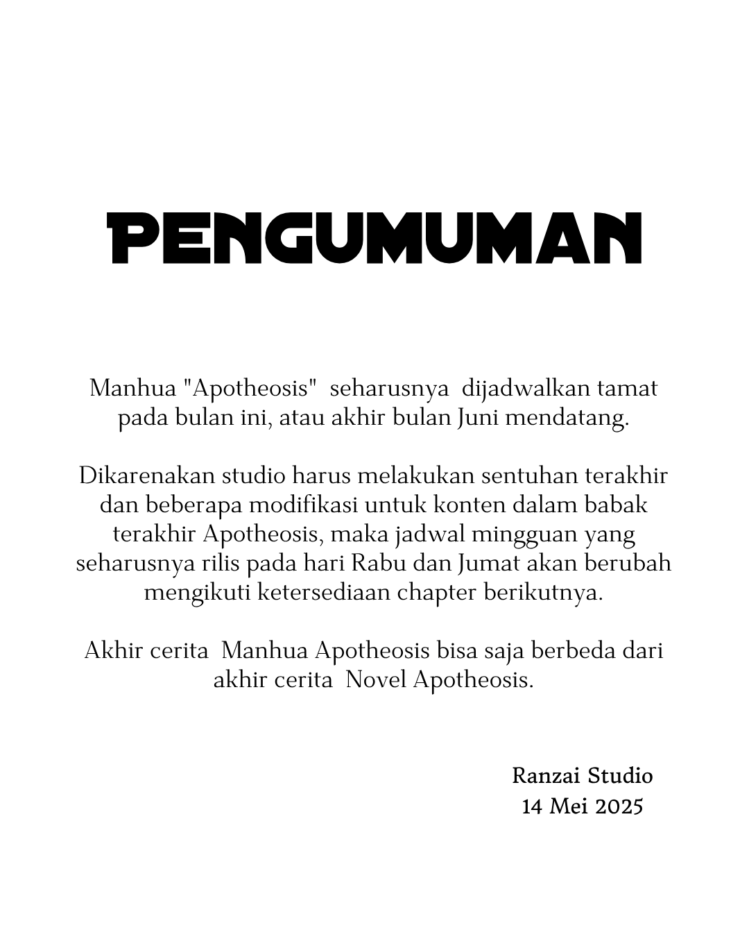 Semua chapter ada di Apotheosis