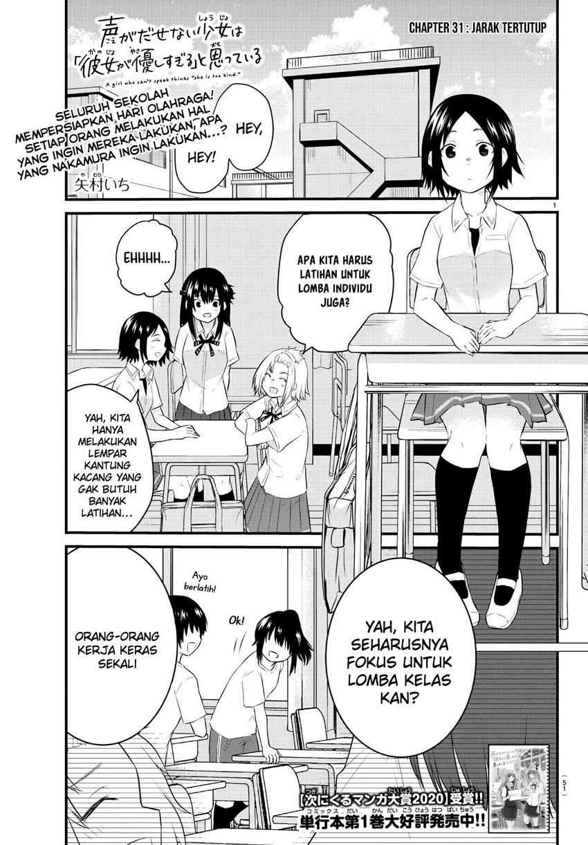 Koe ga dasenai Shoujo wa “Kanojo ga Yasashisugiru” to Omotte iru Chapter 31 Bahasa Indonesia
