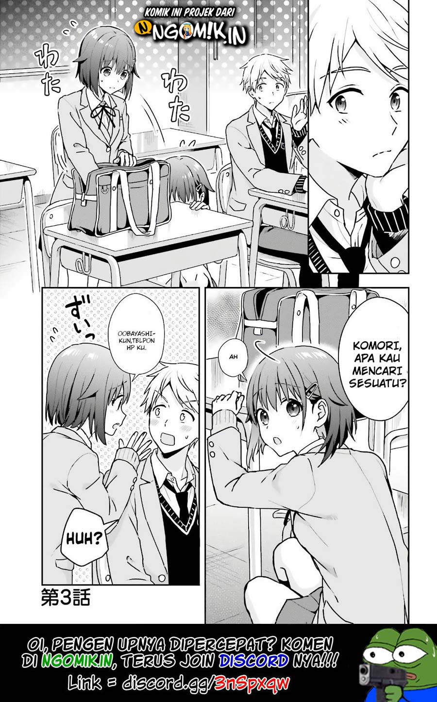 3. Koe no Chiisai Komori-san to Kuso Deka Oogoe no Oobayashi-kun Chapter 03 Bahasa Indonesia
