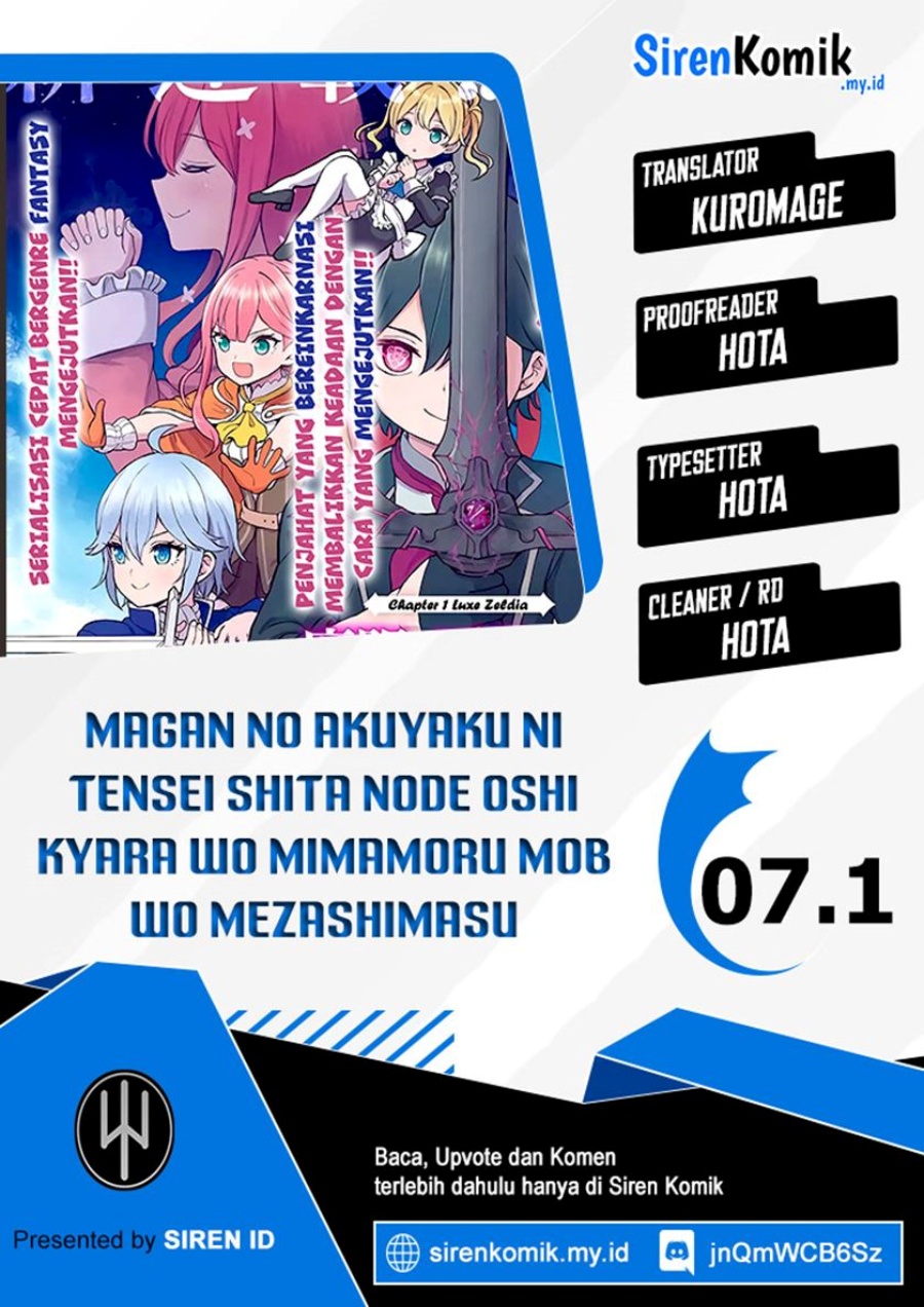 Magan no Akuyaku ni Tensei Shita no de Oshi Chara o Mimamoru Mob o Mezashimasu Chapter 07.1 Bahasa Indonesia