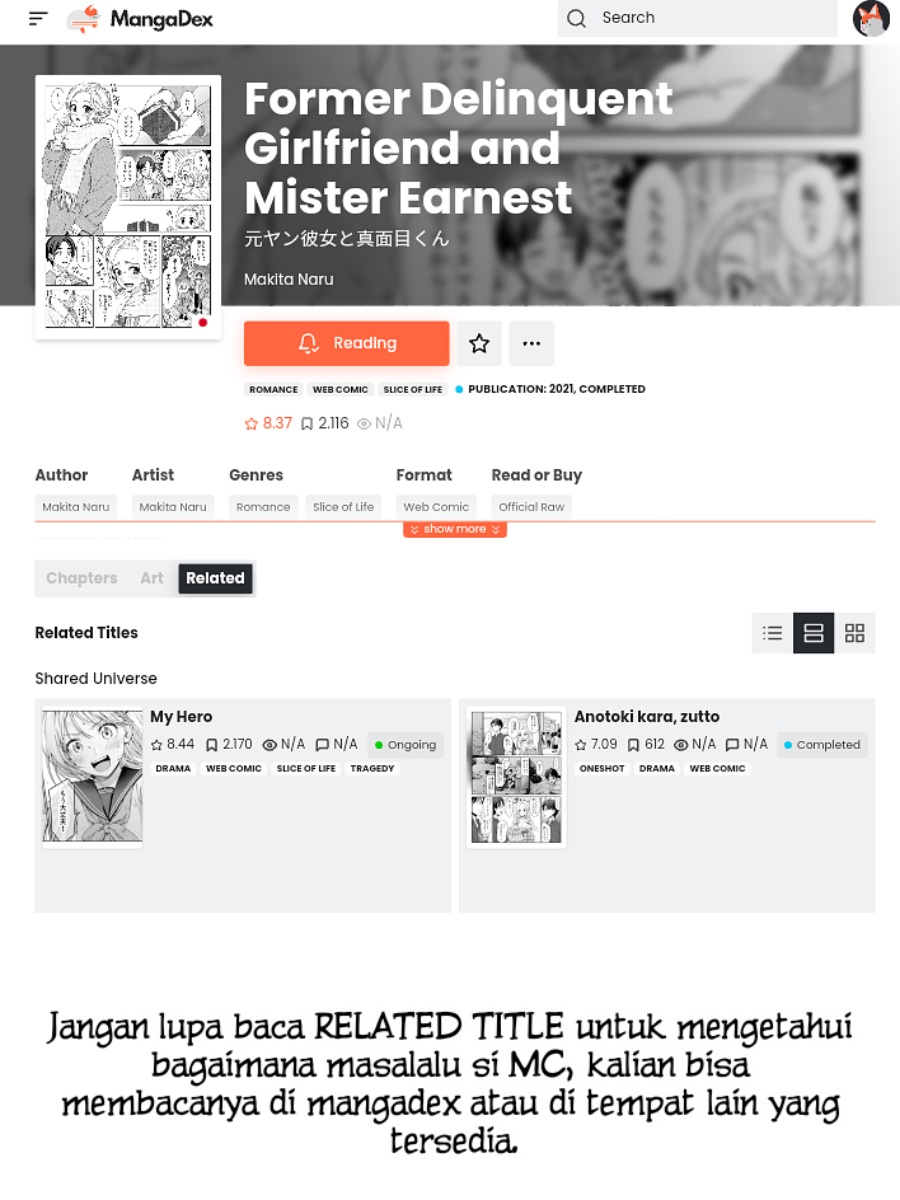Baca manga Moto Yan Kanojo to Majime-kun (Former Delinquent Girlfriend and Mister Earnest) terbaru di Komikcast. Manga Moto Yan Kanojo to Majime-kun (Former Delinquent Girlfriend and Mister Earnest) selalu update di Komikcast. Jangan lupa membaca update manga lainnya ya. Daftar koleksi manga Komikcast ada di menu Daftar Manga.