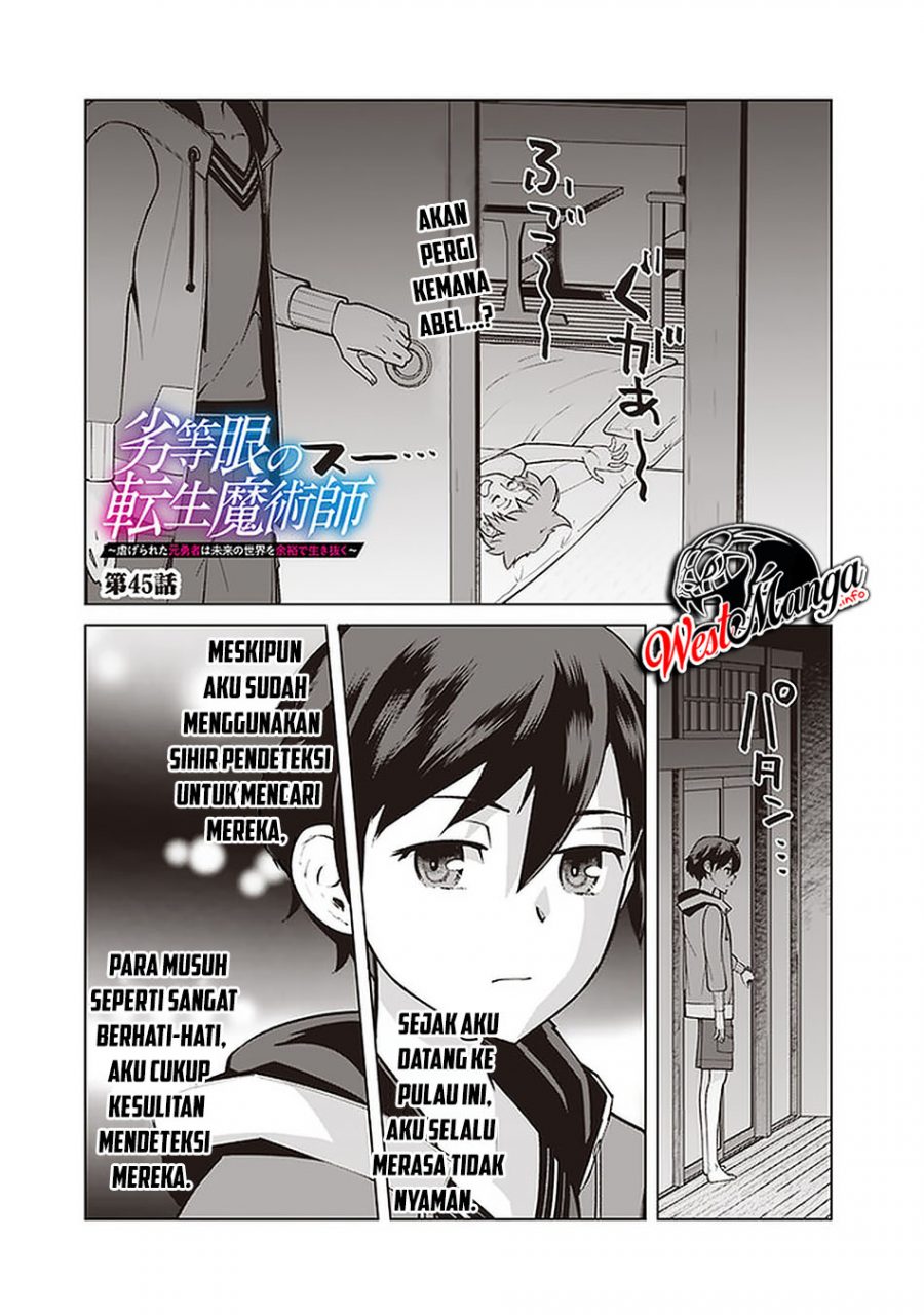 Rettou Me no Tensei Majutsushi Shiitage Rareta Moto Yuusha wa Mirai no Sekai o Yoyuu de Ikinuku Chapter 45 Bahasa Indonesia