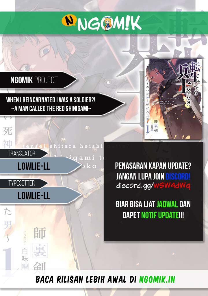Tensei Shitara Heishi Datta? Akai Shinigami to Yobareta Otoko (When I Reincarnated I Was a Soldier?!) Chapter 01.3 Bahasa Indonesia